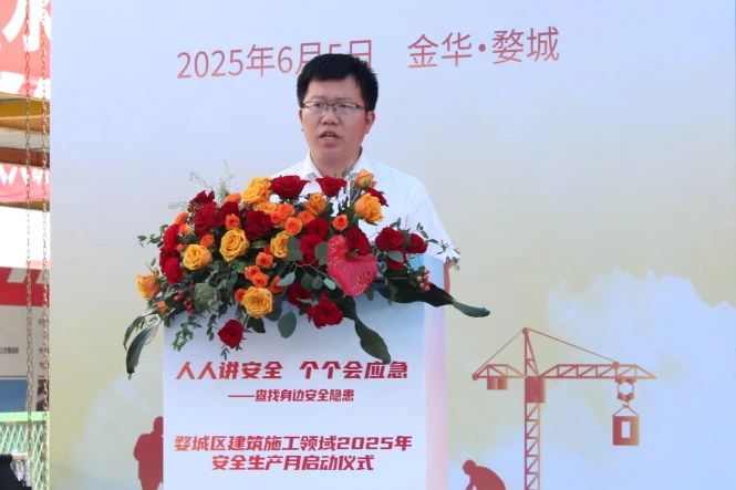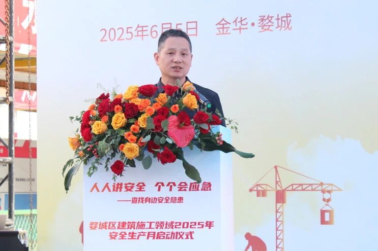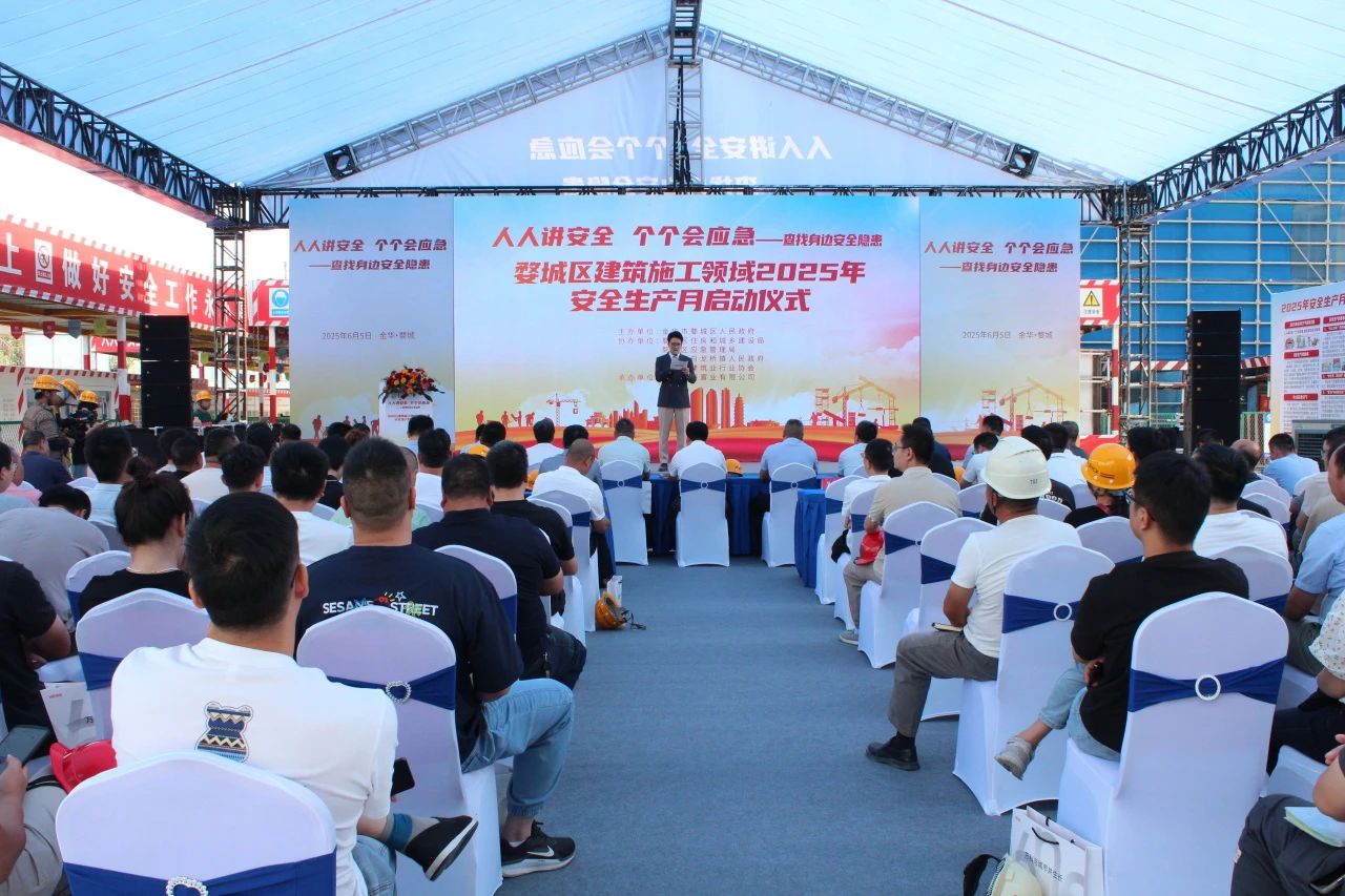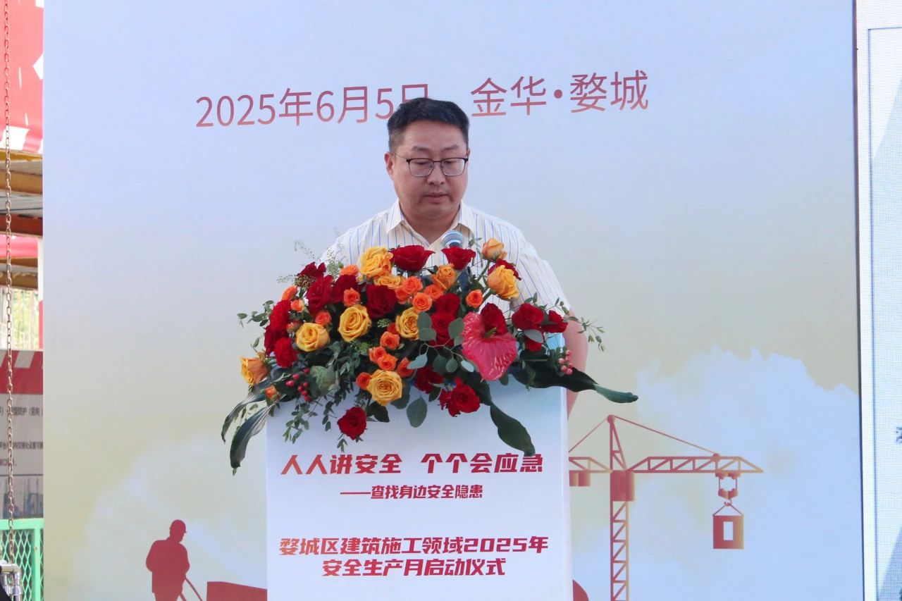 6月5日,婺城區建筑施工領域2025年安全生產月啟動儀式在雙圓建管監理的萬科萬誠華府二期二標項目現場順利召開。婺城區副區長唐有新、區住建局副局長章小軍及全區近百位在建項目代表參加啟動儀式。雙圓建管總經理王斌作為活動培訓專家受邀出席。